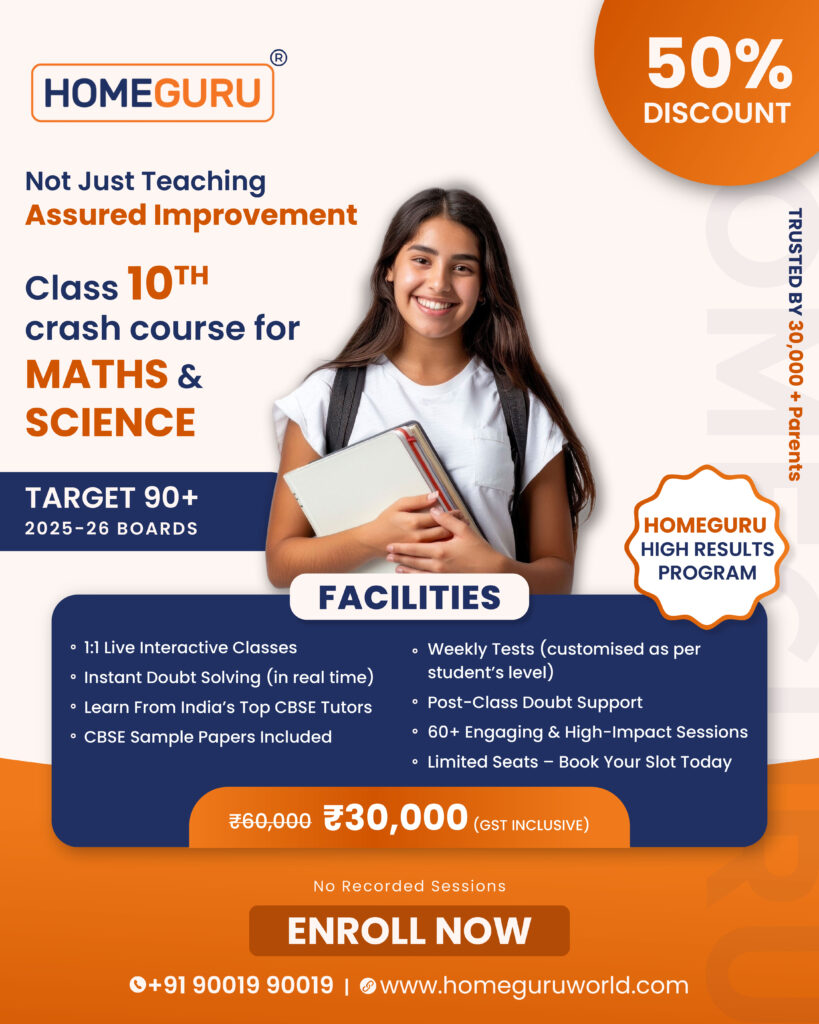 The clock is ticking; make these next few weeks count. Enroll now in HomeGuru’s Class 10 Crash Courses (2025–26 Boards) and turn your preparation into performance!